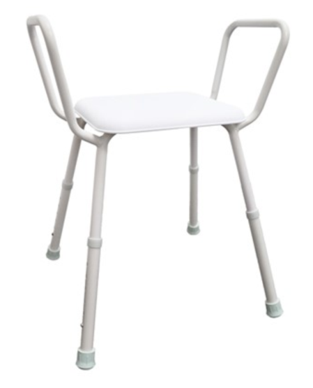 adjustable shower stool with injection moulded plastic seat and a powder coated