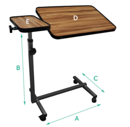 bed or sitting in a chair. The larger surface of the table can be tilted whilst