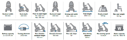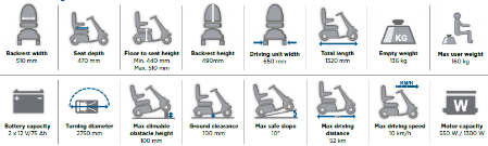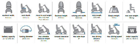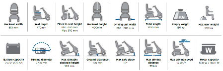 An on-board electronic speed reduction system automatically reduces speed around bends, ensuring users are confidently making safe, comfortable manoeuvres. Furthermore, a two-step disengaging lever prevents the scooter from freewheeling if it is knocked out of drive mode.