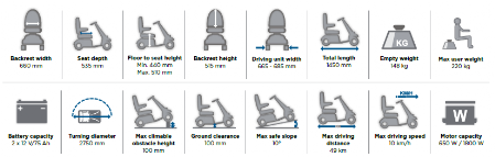 - Chair weight 47.8 kg with batteries