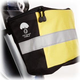 flexible enough to fit a variety of baskets from different manufacturers. We have two sizes available to fit either wire or plastic baskets. The Front Basket Cover is available in fluorescent yellow or orange with a reflective strip for added visibility. Combined with the Headrest Cover as a Safety Combo, the Front Basket Cover greatly increases the chances of the scooter user to be seen making their ride a safer one.