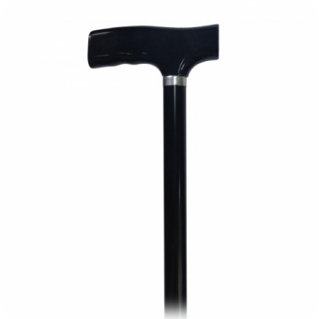 adjustable height stick has a wooden T-handle and non-slip, rubber tip/ferrule.